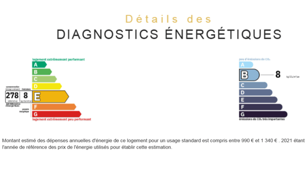DPE : E (278 kWh/m²/an, énergie finale 120 kWh/m²/an).